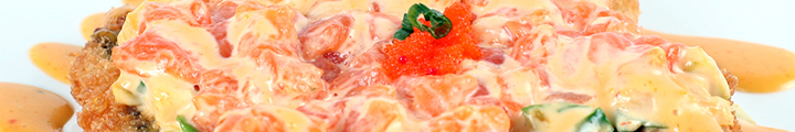IZZA FRUIT DE MER: Tartare de petoncle, crevette, goberge de crabe, tobiko, avocat, concombre, mayo épicé    9.95$